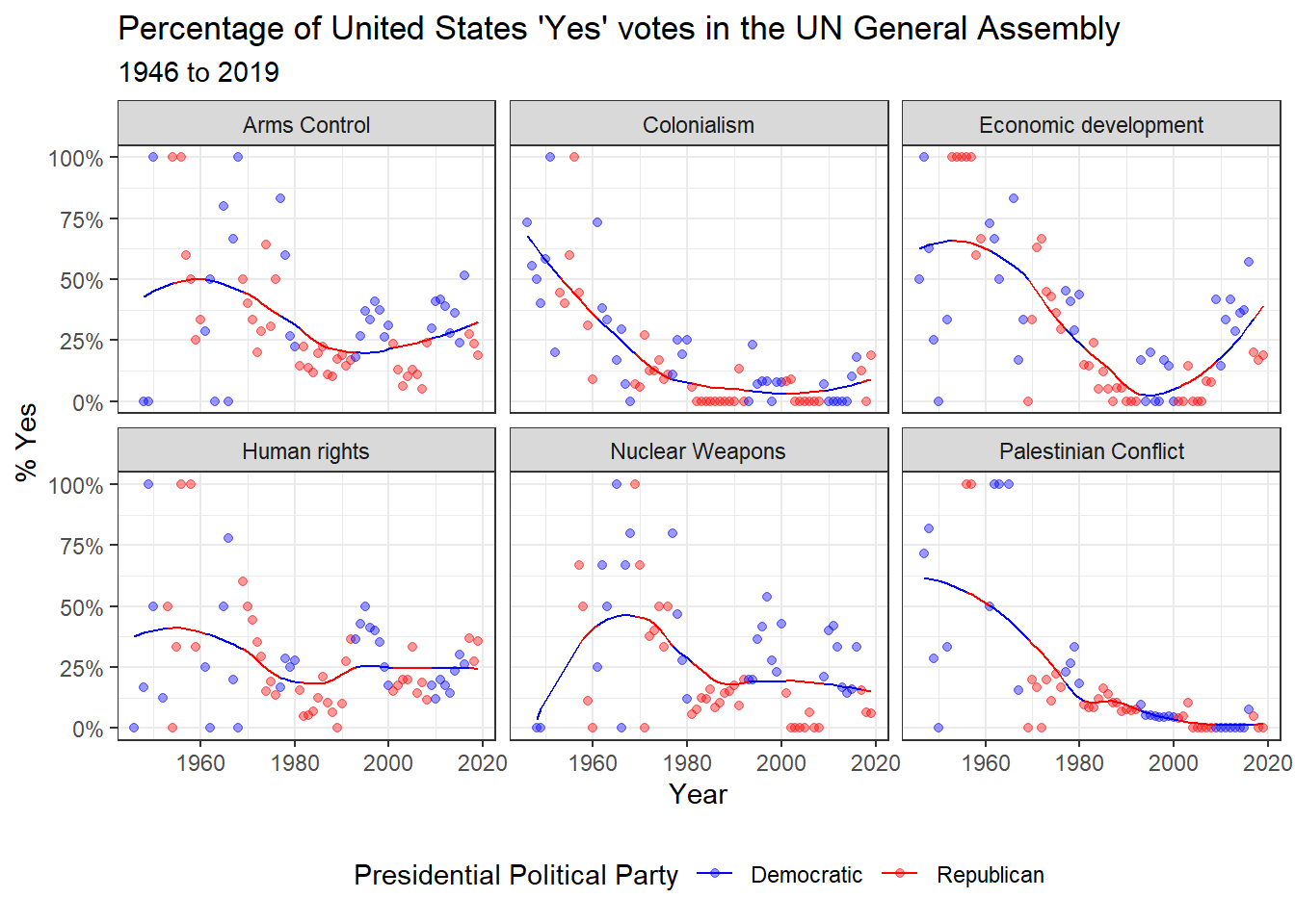 title = "Percentage of 'Yes' votes in the UN General Assembly",